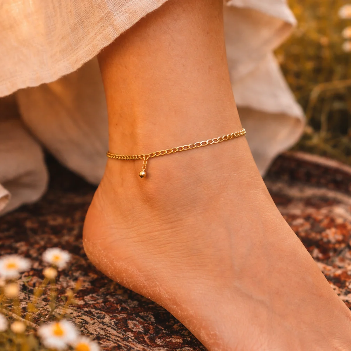 Rozmiar „Comfort”: 24 cm to idealna, uniwersalna długość dla bransoletek na kostkę, gwarantująca brak ucisku i seksowne ułożenie tuż poniżej linii kostki.