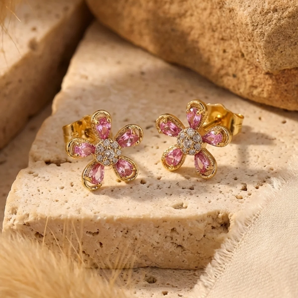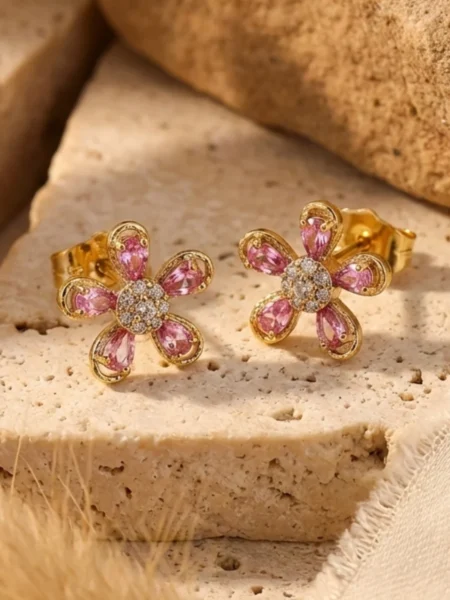 • Kamienie: Cyrkonie różowe (płatki) + białe (środek).