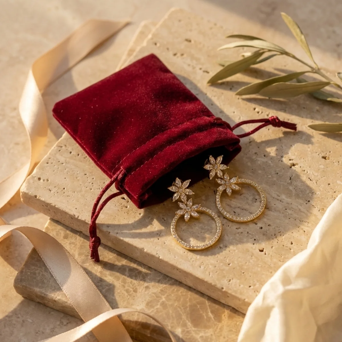 Do każdego zamówienia dołączamy biżuterię zapakowaną w eleganckie etui — gotową do podarowania jako prezent bez dodatkowego pakowania. Paczka jest starannie zabezpieczona na czas transportu.
