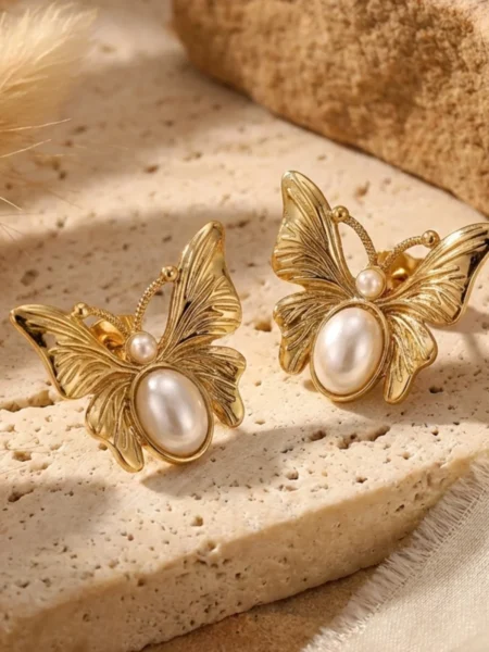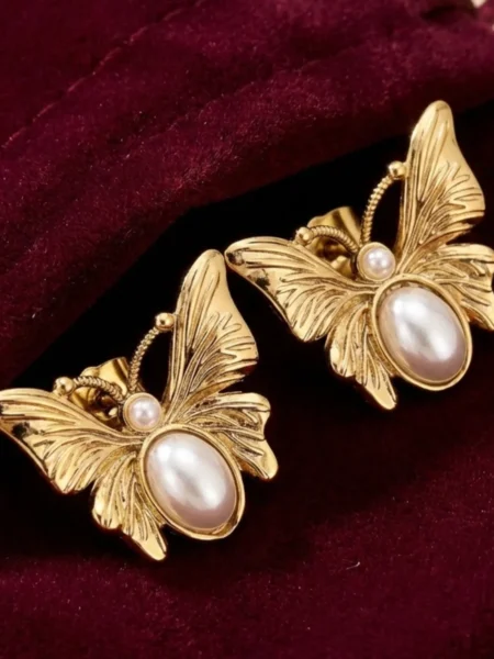 Poczuj magię ukrytą w detalach. Te zjawiskowe kolczyki w kształcie motyli (20×22 mm) to hołd dla stylu vintage i piękna natury. Kunsztownie rzeźbione, złote skrzydełka idealnie komponują się z aksamitnym blaskiem owalnych i okrągłych pereł. To wyjątkowy dodatek „Statement”, który przyciąga spojrzenia i dodaje baśniowego uroku każdej stylizacji.
