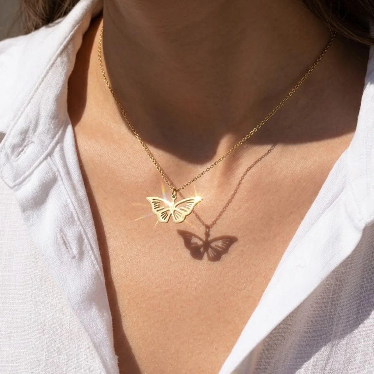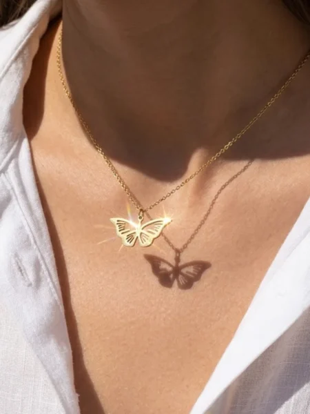 Poczuj lekkość letnich dni. Ten uroczy naszyjnik (40 cm) to kwintesencja delikatności i wolności. Zawieszka w kształcie ażurowego motyla pięknie układa się na dekolcie, a wykonanie z najwyższej jakości stali szlachetnej gwarantuje bezkompromisową trwałość. To biżuteria odporna na wodę i codzienne wyzwania, stworzona po to, by towarzyszyć Ci w każdej pięknej chwili.